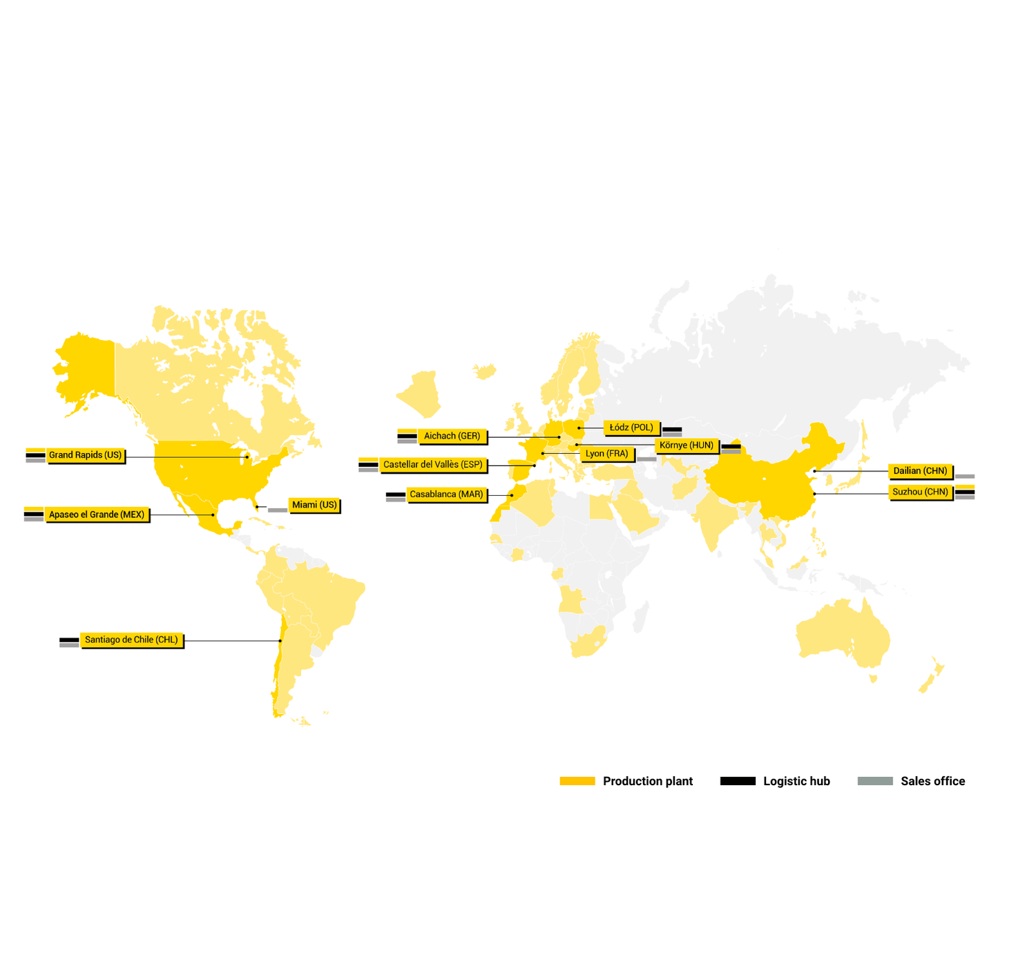 We have manufacturing plants in Spain, Germany, China, Mexico and the United States, as well as 10 logistics centres on four continents, meaning we can stay close to the companies we work with and offer rapid, effective solutions to changing demands.
